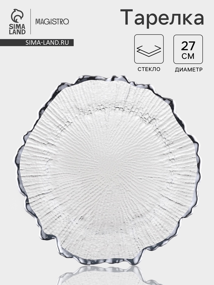 Тарелка Magistro «Сияние», d=27 см, серебристая отводка, стекло, прозрачная