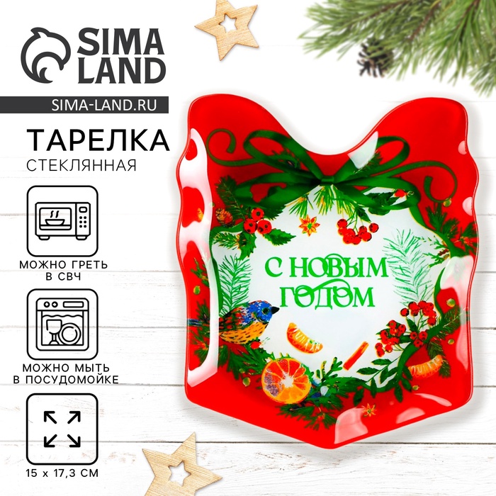 Тарелка новогодняя плоская «С Новым годом», 15×17.3 см