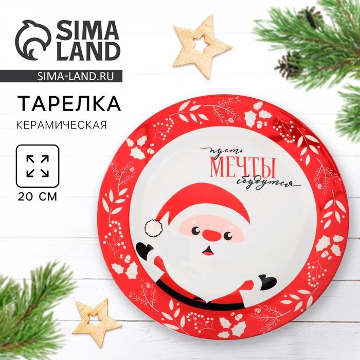 Тарелка плоская новогодняя «Пусть мечты сбудутся», d=20 см