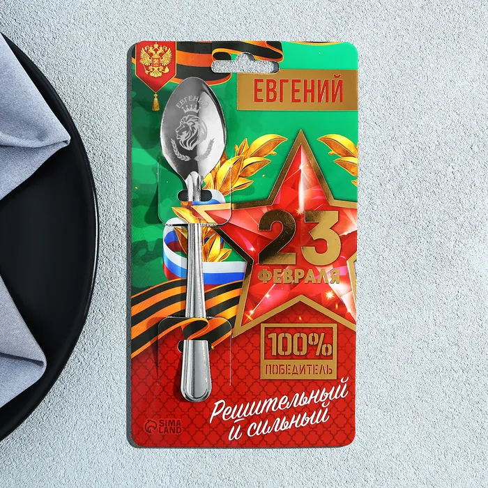 Ложка именная с 23 Февраля «Евгений», 3 х 14 см.