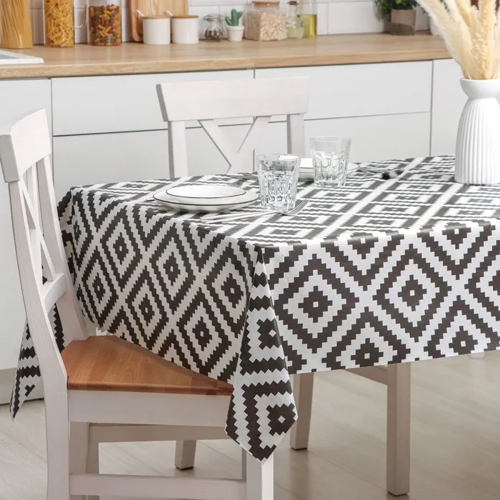 Клеёнка на стол на нетканой основе Доляна «Геометрия», ширина 140 см, рулон 20 м, белая