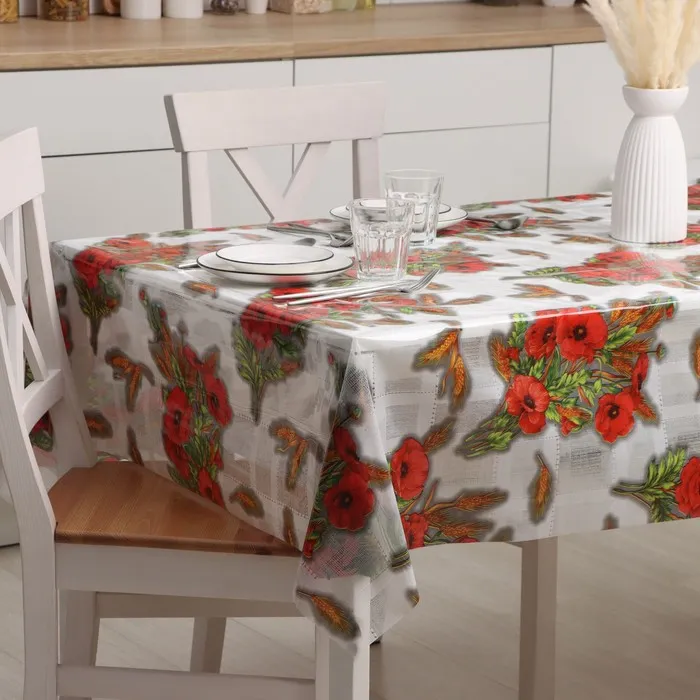Клеёнка на стол Доляна «Маки», ширина 137 см, толщина 0.08 мм, рулон 30 м
