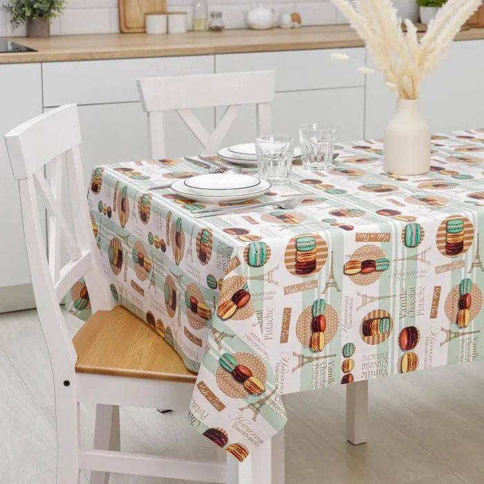 Клеёнка на стол Доляна «Макаруны», на тканевой основе, рулон 20 м, ширина 137 см, общая толщина 0.22 мм, бежевая