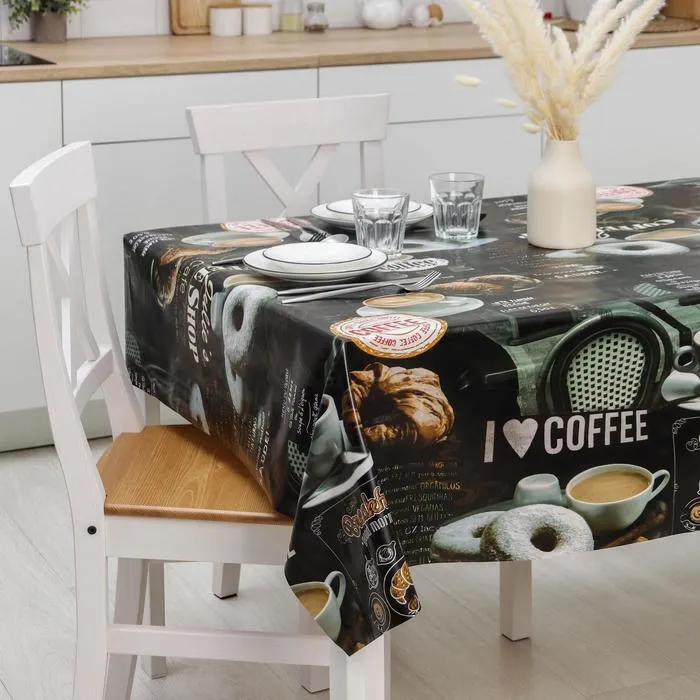 Клеёнка на стол Доляна «Я люблю кофе», на тканевой основе, рулон 20 м, ширина 137 см, общая толщина 0.22 мм, чёрная