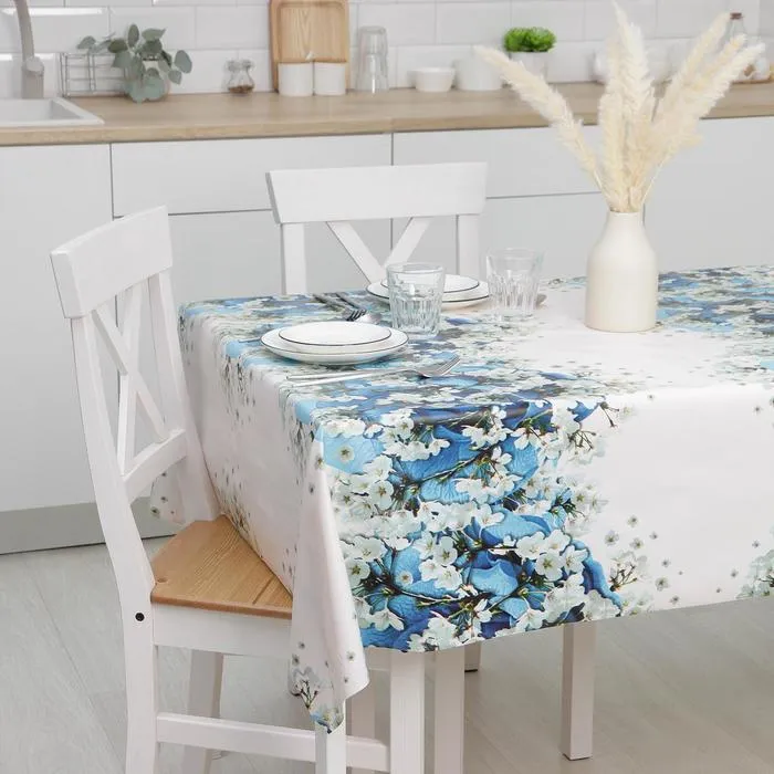 Клеёнка на стол Доляна «Синие розы», на тканевой основе, рулон 20 м, ширина 137 см, общая толщина 0.22 мм, синяя