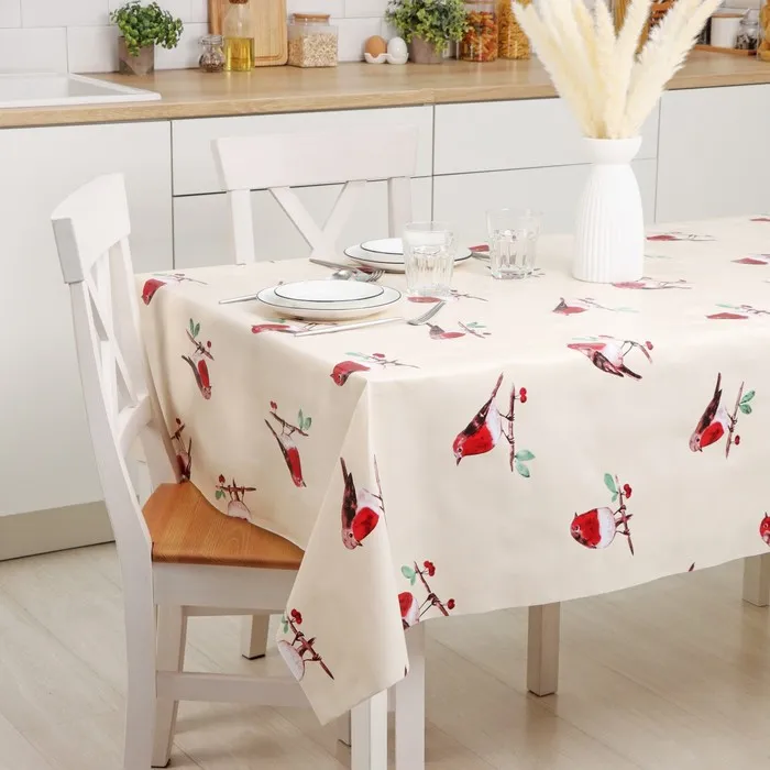 Клеёнка на стол Доляна «Снегири», на нетканой основе, ширина 137 см, рулон 20 м