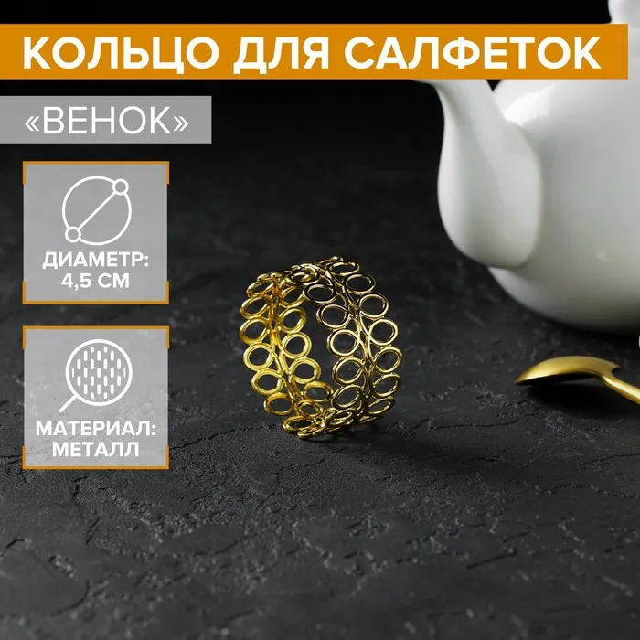Кольцо для салфеток «Венок», 4.5×2 см, золотистое