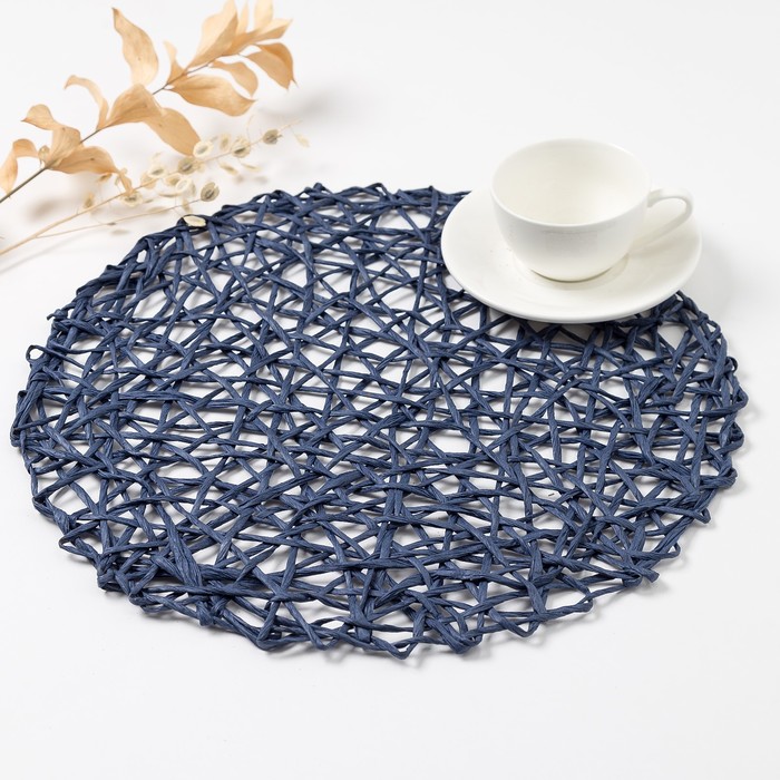 Салфетка сервировочная «Доляна. Трава», синяя, d=38 см