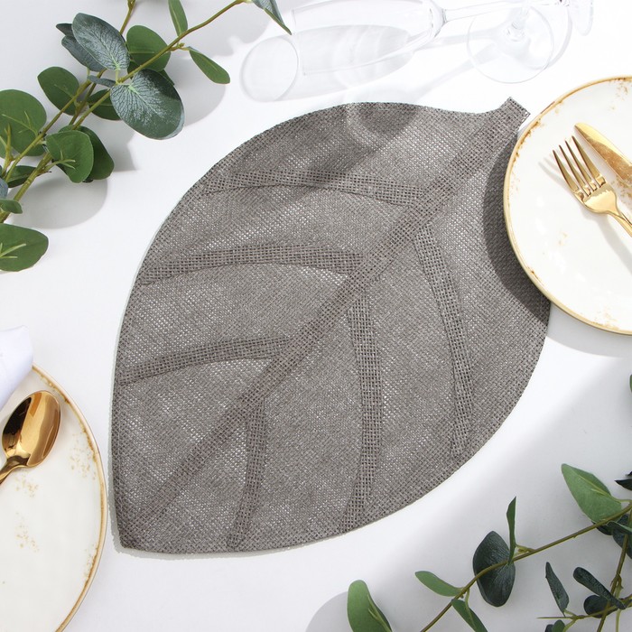 Салфетка сервировочная Доляна «Листочки», 30×45 см, серая