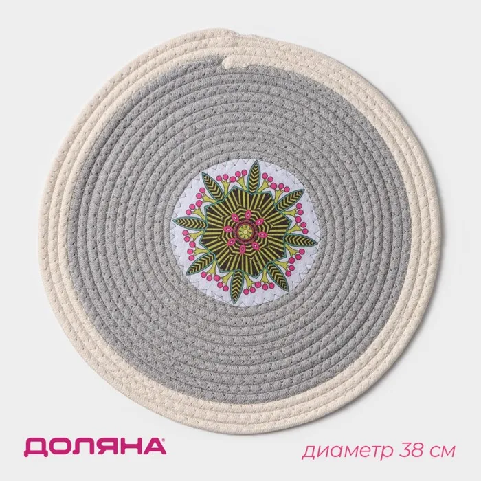 Салфетка сервировочная на стол Доляна «Мира», d=38 см, серая, рисунок МИКС