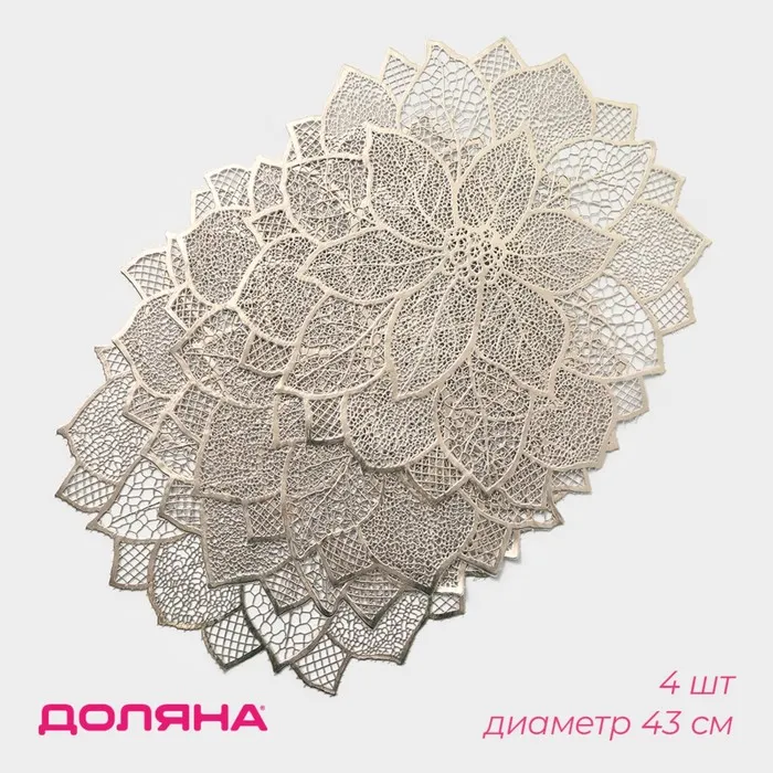 Салфетки сервировочные на стол Доляна «Цветок», 4 шт, 43×43 см, цвет золотой