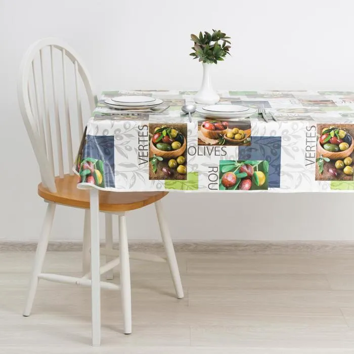 Скатерть на стол Доляна, 137×180 см, бело-зелёная