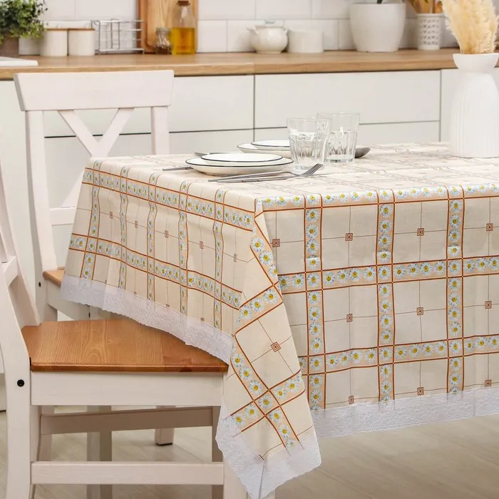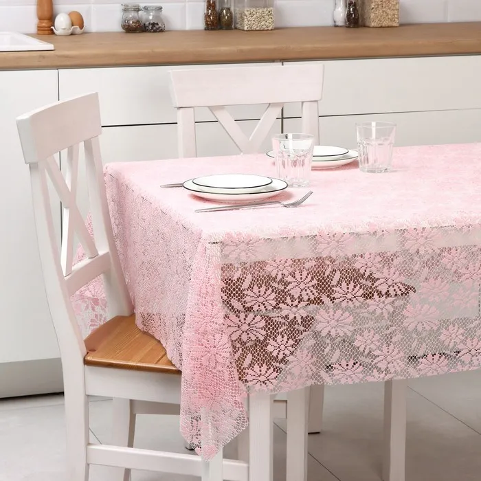 Скатерть на стол «Кружево», нетканая основа, многоразовая, с кружевом, 130×140 см