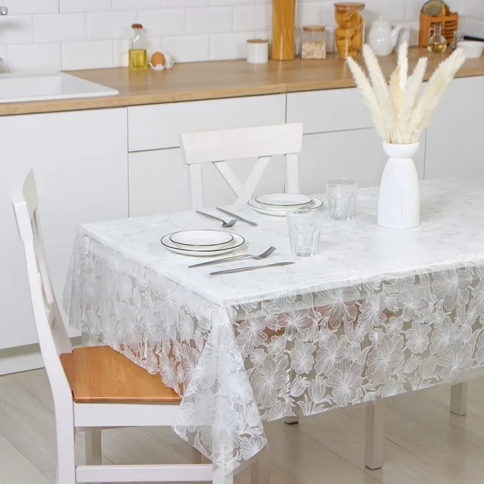 Скатерть без основы многоразовая «Ажур», 120×180 см, прозрачная