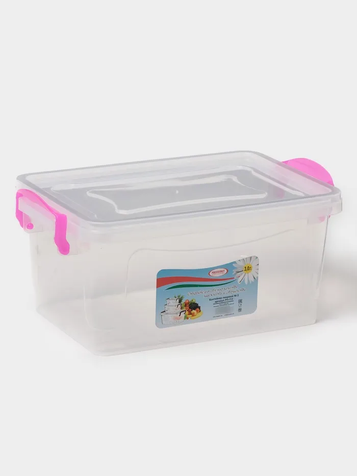 Контейнер пищевой, 3 л, 28×16×12 см, прямоугольный, прозрачный, ручки МИКС