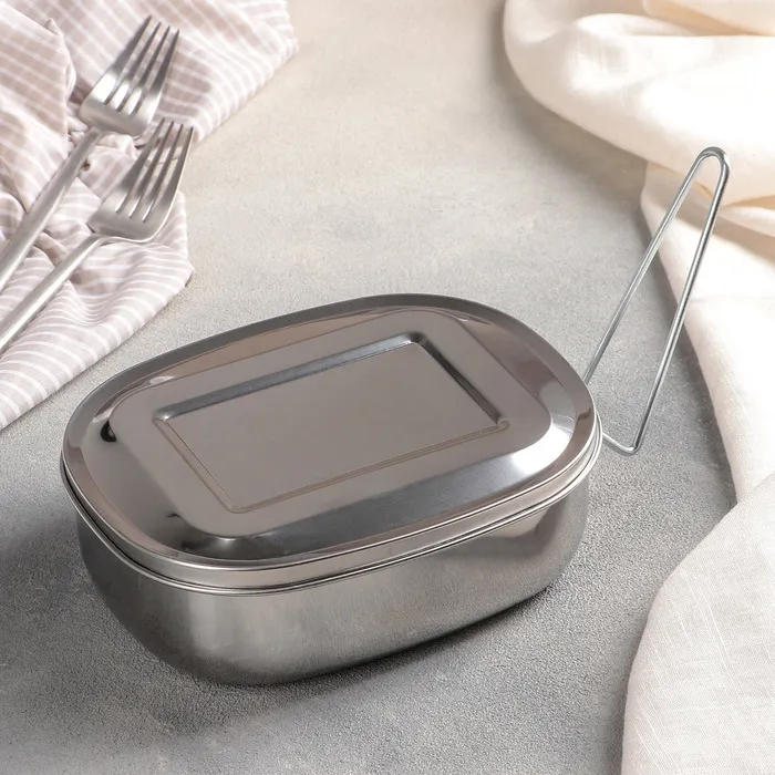 Контейнер для еды, 17×13.5 см, с держателем, нержавеющая сталь, серебристый