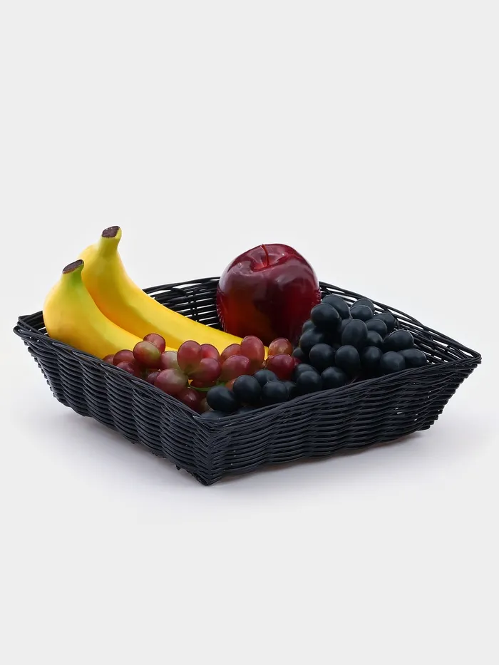 Корзинка для фруктов и хлеба Доляна «Плетёнка», 24×24×6.5 см, пластик, плетёная, чёрная