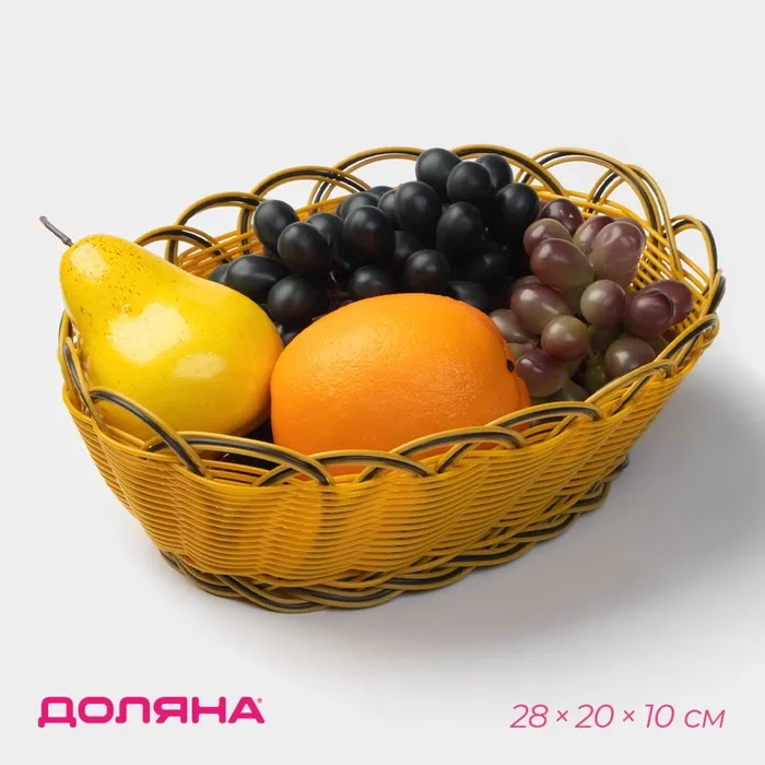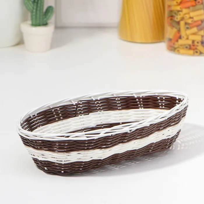 Корзинка для фруктов и хлеба Доляна «Огайо», 31×21×5 см, пластик, плетёная, овальная, коричневая