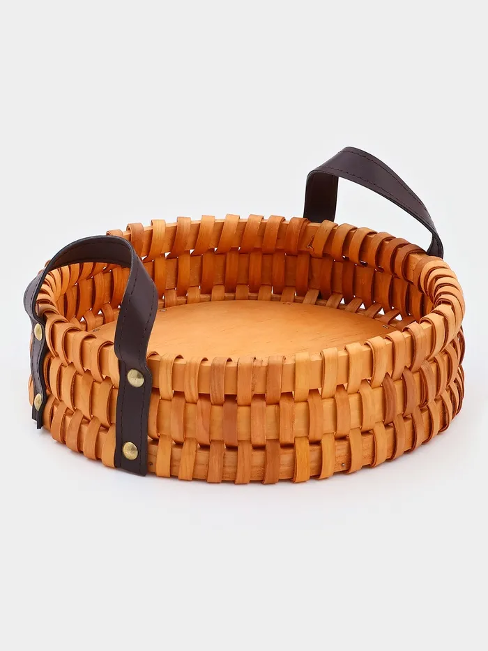 Поднос-корзинка для завтрака Доляна «Массив», с ручками из искусственной кожи, d=25 см