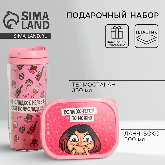 Подарочный набор «Ни в чём себе не отказывай»: термостакан 350 мл, ланч-бокс 500 мл