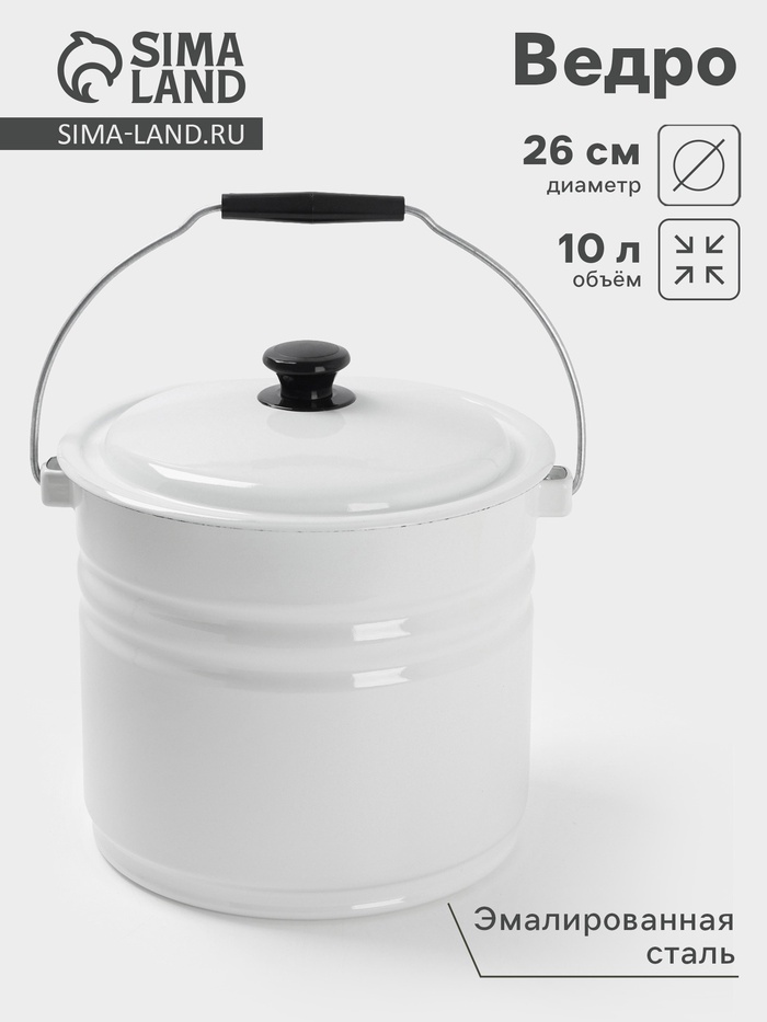 Ведро эмалированное, 10 л, с крышкой и ручкой, белое