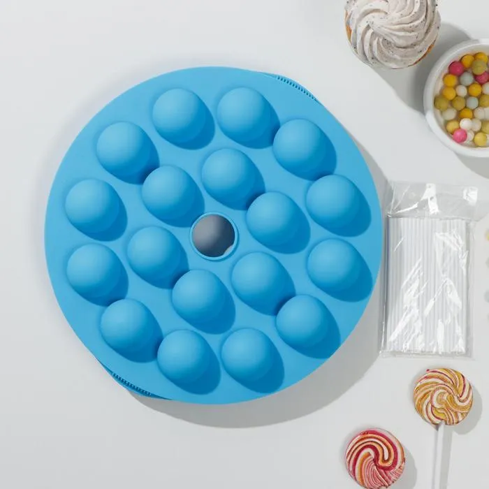 Форма для леденцов Доляна «Лолли-поп», силикон, 26×25×4 см, 18 ячеек (d=3,7 см), с палочками, цвет МИКС