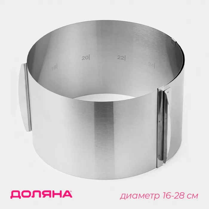 Форма для выкладки и выпечки с регулировкой размера Доляна, d=16-28 см, h=14.5 см, нержавеющая сталь