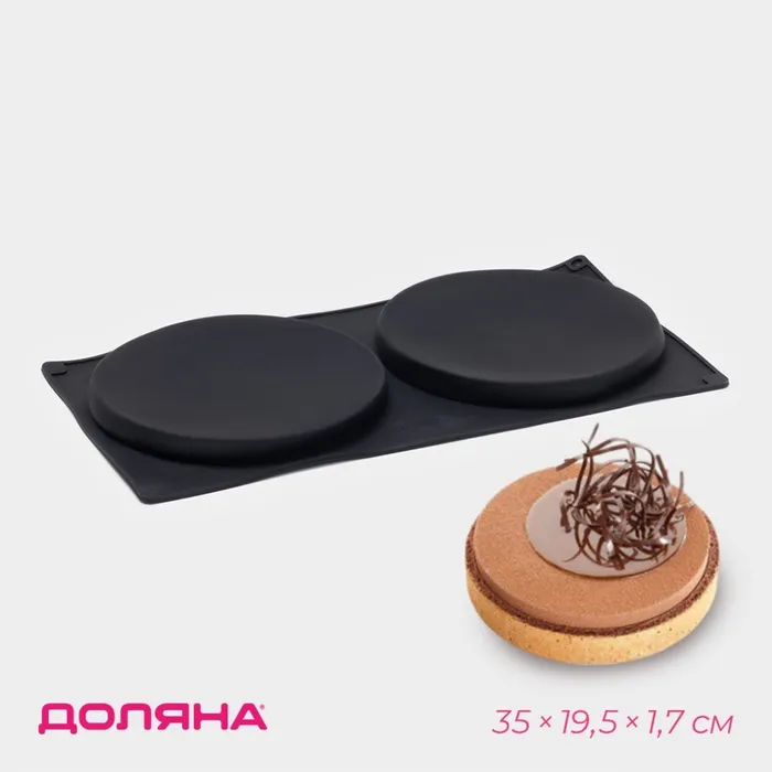 Форма для выпечки Доляна «Бискотто», силикон, 2 ячейки, 35×19.5×1.7 см, d=16 см, чёрная