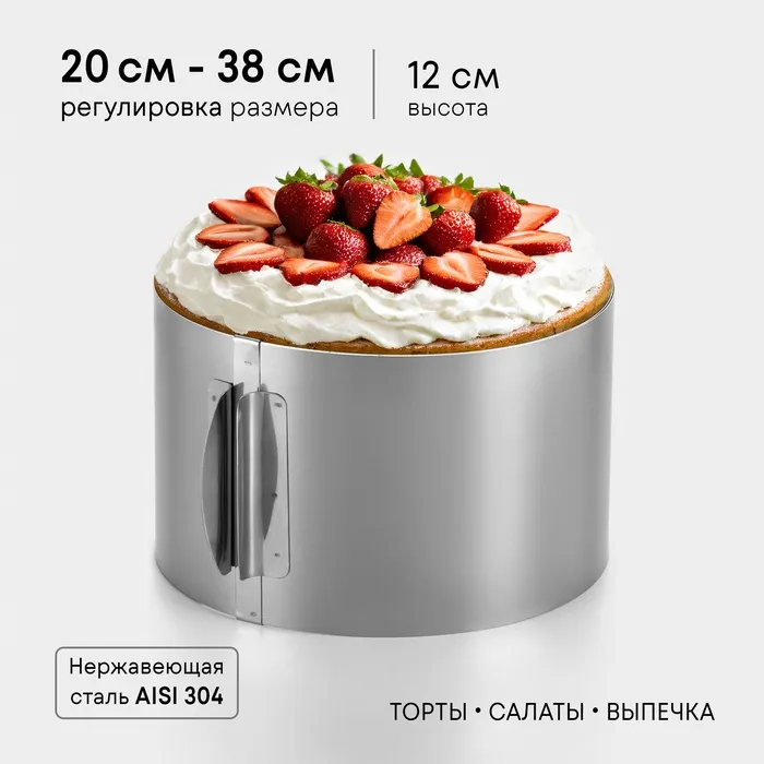 Форма для выкладки и выпечки с регулировкой размера Доляна, d=16-20 см, серебристая