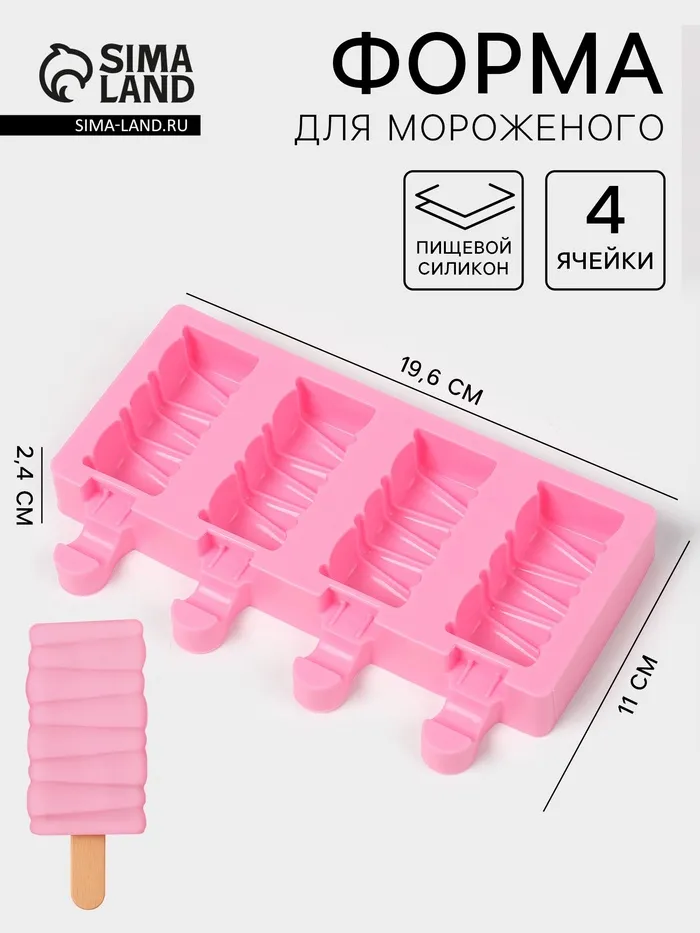 Форма для мороженого «Венеция», силикон, 19.6×11×2.4 см, 4 ячейки, розовая