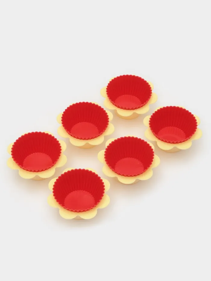 Формы для выпечки кексов Доляна «Риб. Ромашка», силикон, 9×3 см, набор 12 шт., жёлтые, красные