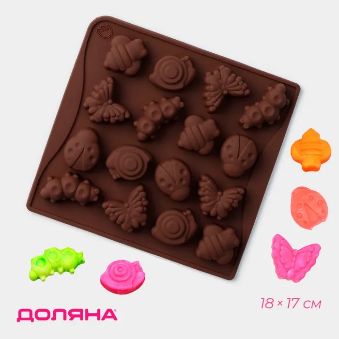 Форма для конфет и шоколада Доляна «Насекомые», силикон, 18×17 см, 16 ячеек (3.5×3.5 см), коричневая