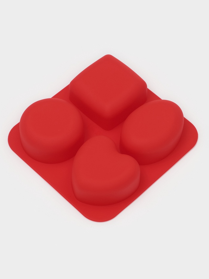 Форма для выпечки «Фигуры и сердце», 16×17 см, 4 ячейки (7×7 см), силикон, МИКС