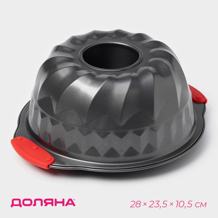 Форма для выпечки Доляна «Немецкий кекс. Забота», 28×23,5×10,5 см, с силиконовыми ручками, антипригарное покрытие, цвет чёрный