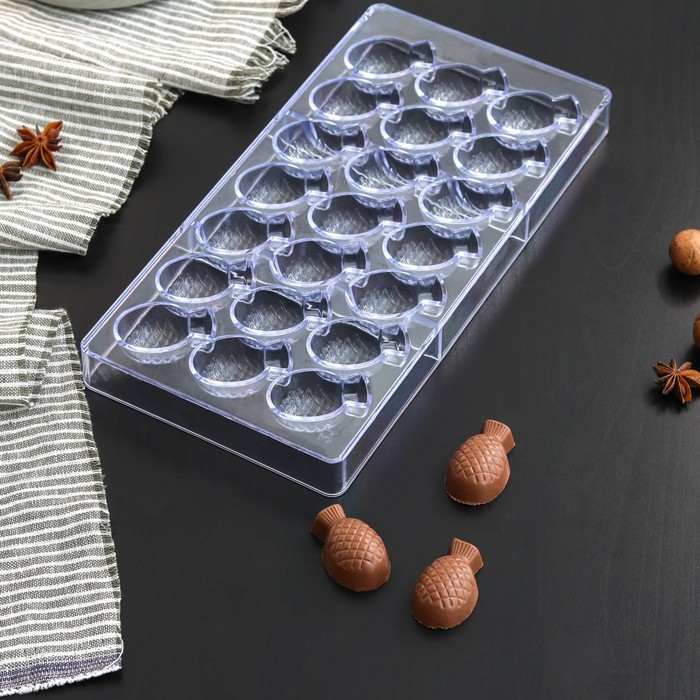 Форма для конфет и шоколада «Ананас», 28×14 см, 21 ячейка, цвет прозрачный