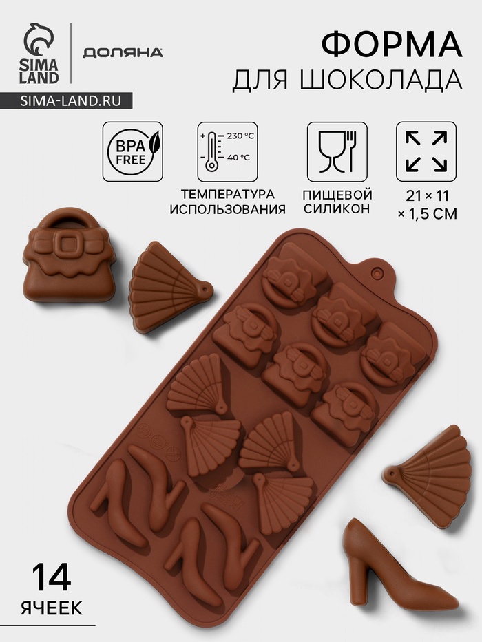 Форма для кондитерских украшений Доляна «Дамский набор», силикон, 21×11×1,5 см, 14 ячеек, коричневая
