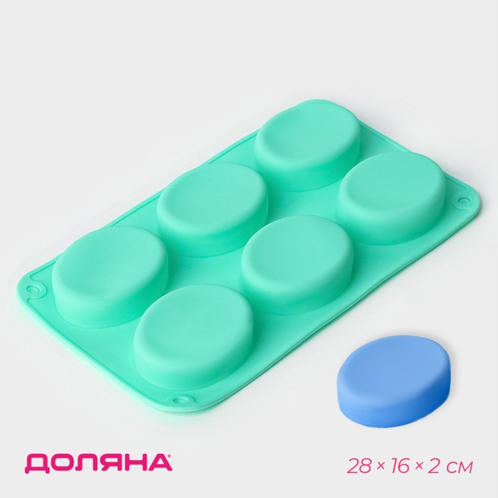 Форма для выпечки Доляна «Фигуры. Овал», силикон, 28×16×2 см, 6 ячеек, бирюзовая