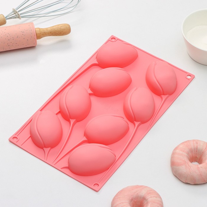 Форма для выпечки Доляна «Тюльпаны», силикон, 8 ячеек, 30×17,5×3 см, цвет розовый