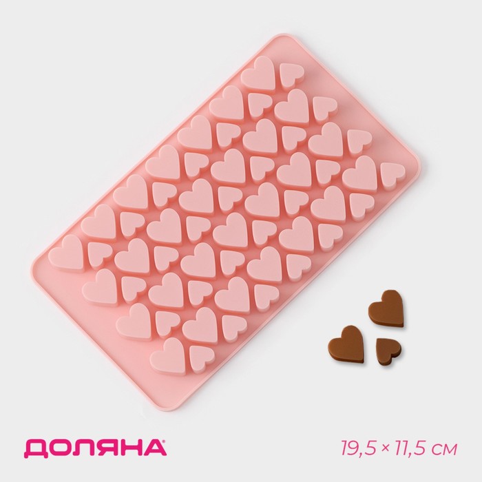 Форма для конфет и шоколада Доляна «Сердечки», силикон, 19.5×11.5 см, 56 ячеек (2×2/1.5×1.5 см), розовая