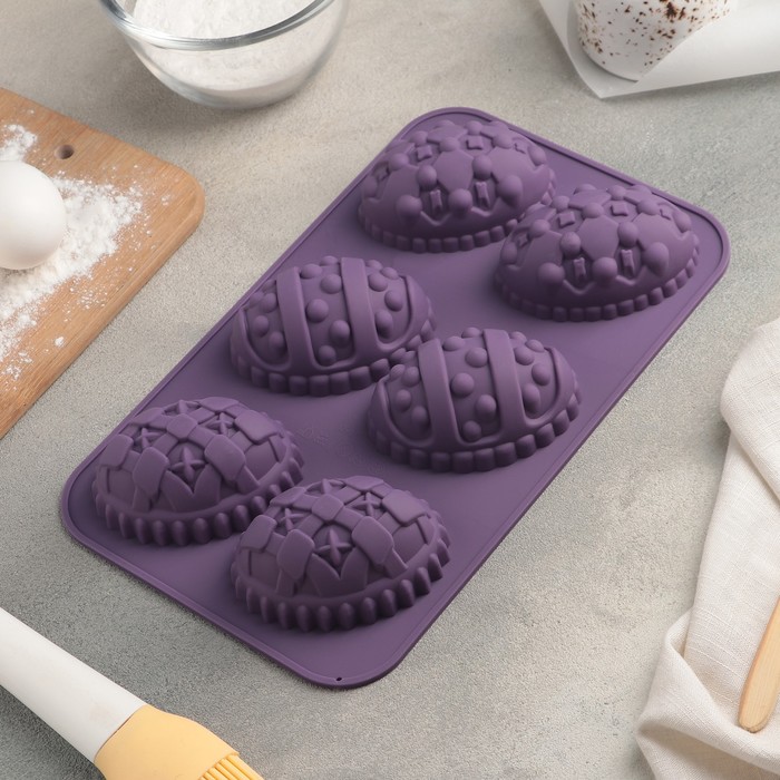 Форма силиконовая для выпечки Доляна «Пасхальные яйца», 27×16,5 см, 6 ячеек (8,8×6 см), цвет МИКС