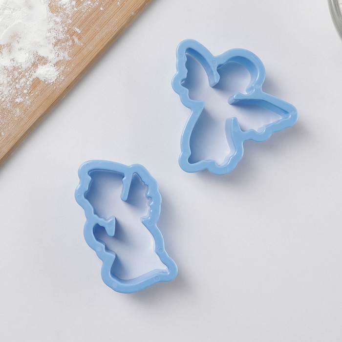 Набор форм для печенья Доляна «Ангелы», 2 шт, 14×13×2 см, цвет голубой