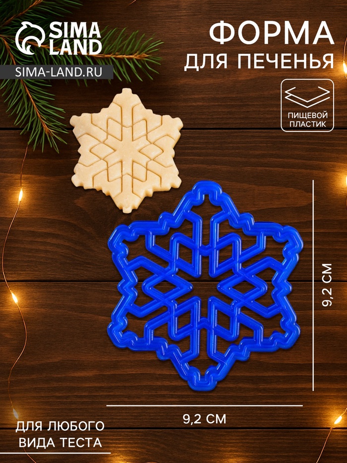 Форма для печенья новогодняя «Снежинка», вырубка, штамп, 9.2×9.2×1.4 см, пластик, синяя