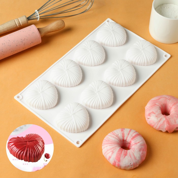 Форма для муссовых десертов и выпечки KONFINETTA «Вязаное сердце», силикон, 29,5×17×2 см, 8 ячеек (5,5×6,5×1,5 см), цвет белый