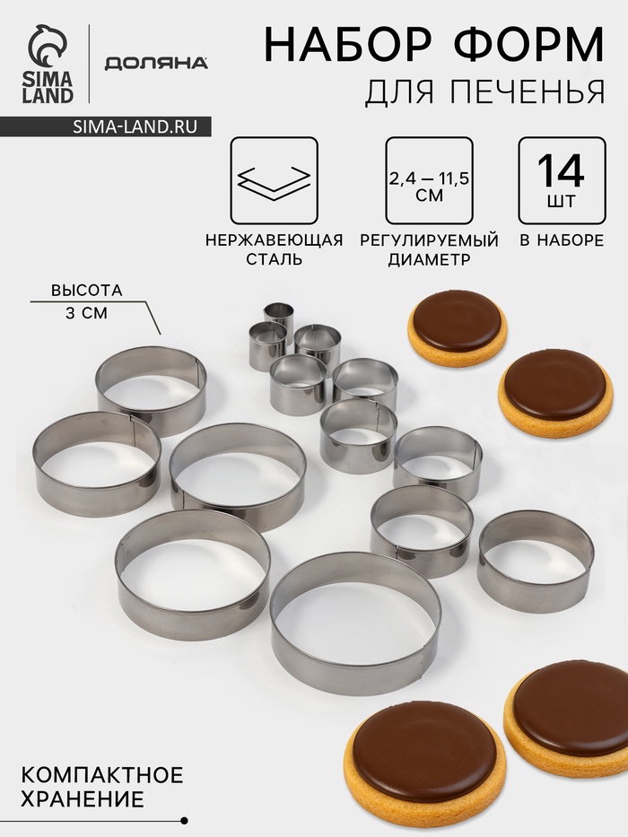 Форма для печенья Доляна «Круг», набор 14 шт., d=2.4-11.5 см, h=3 см, нержавеющая сталь