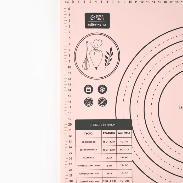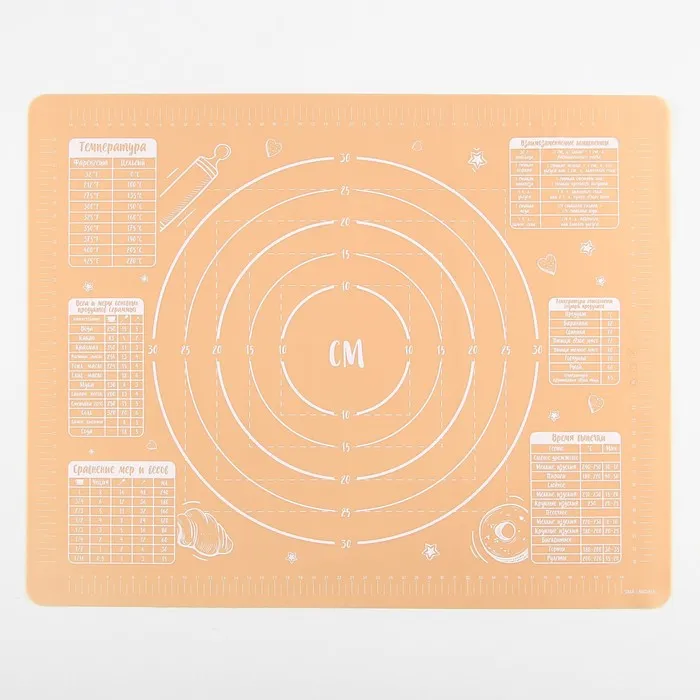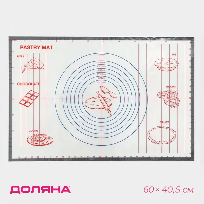 Коврик для выпечки и раскатки теста с разметкой Доляна, армированный, силикон, 60×40.5 см