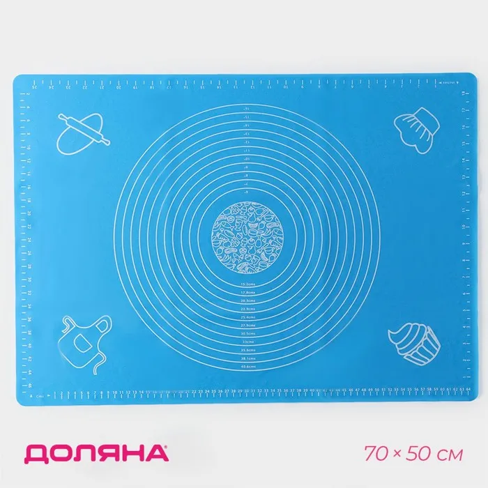 Коврик для выпечки и раскатки теста с разметкой Доляна «Эрме», силикон, 70×50 см, синий