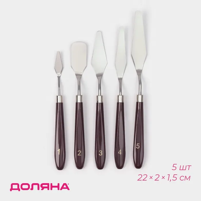 Лопатки - мастихины кондитерские Доляна, 22×2×1.5 см, набор 5 шт., нержавеющая сталь, коричневые