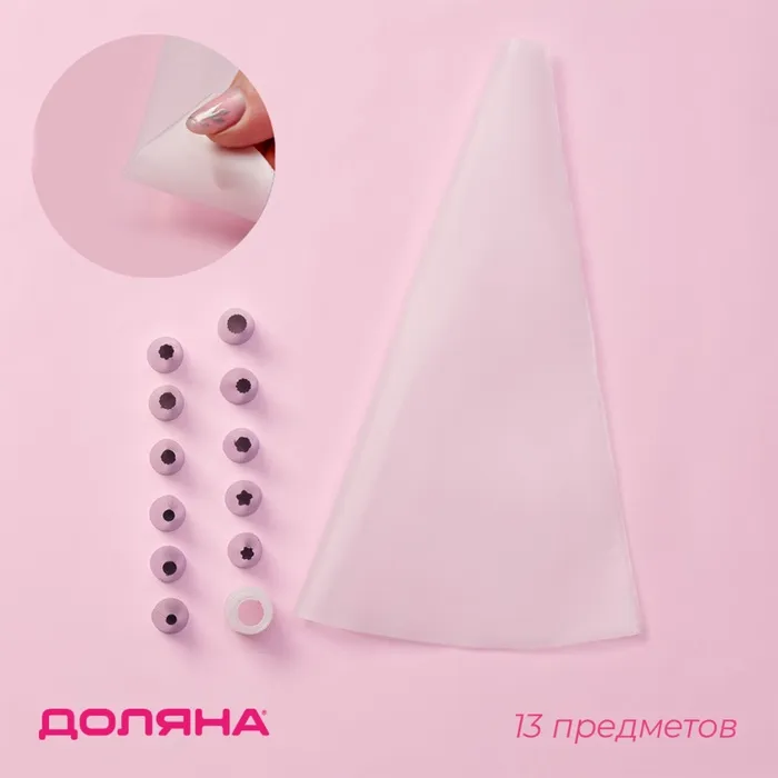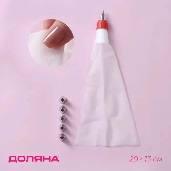 Набор кондитерский Доляна, 7 предметов: мешок 24 см, 6 насадок d=1.8 см, насадки и МИКС