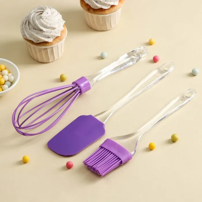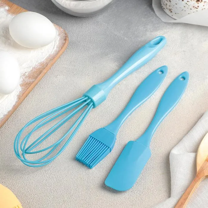 Набор для выпечки Доляна «Лёд. Макси», 3 предмета: лопатка 24 см, кисть 22 см, венчик 26 см, цвет МИКС
