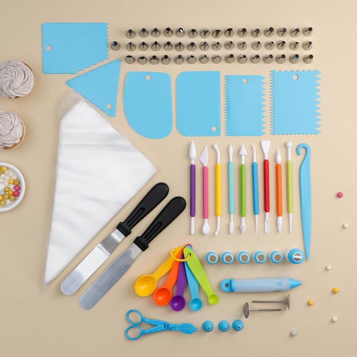 Набор кондитерский «Норма», 13 предметов: щипцы, 8 насадок, кондитерский мешок, адаптер, мерные ложки, кондитерский гвоздь